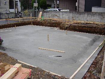 基礎の土間コン打ちが行われました。地縄よりも広さを感じます。