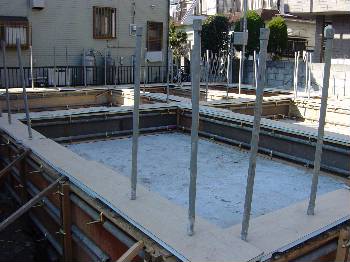 基礎が完成しました。他のメーカーにはない「かぶり圧200mm」の見事な基礎です。