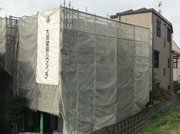 すっぽりとシートに包まれました。屋上に大成建設の旗が設置され、側面にもPalconの大きな旗がつきました。