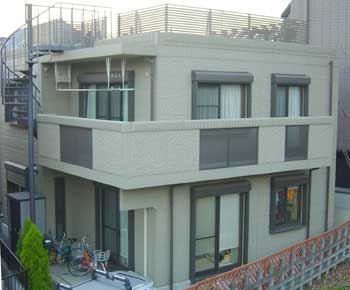 | 入居16年目の秋から冬にかけて外壁と屋上防水工事を行いました。外観は新築時の「ハーブグリーン」から「グレー」に変更。遮熱効果のある最新の塗装へ切り替え、断熱ブロック新しく入替えました |