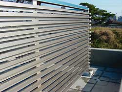 手摺は、通常のアルミ手摺ではなく、目隠しがついているルーバー手摺を設置しましまた。