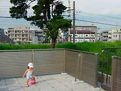 我が家のPalconは全面陸屋根ですので、屋根全面を屋上として使います。Palconの場合、標準仕様で屋根に断熱ブロックが敷かれていますので、手摺と階段を設置すれば容易に屋上が利用できます。