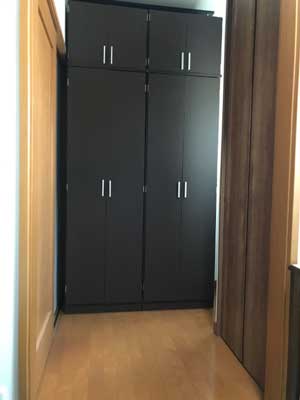 単なる4畳の書斎から、2畳分を収納スペースとして作り付けのクローゼットと後付けのクローゼットを設置