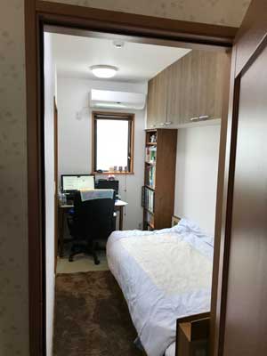 出入口を寝室側と廊下側の設け自由に行き来できるレイアウトとなりました