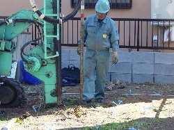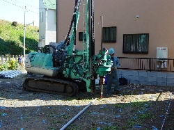 先日、工事に先駆けて大成さんの方で「スウェーデン式サウンディング調査」による地盤調査が行われました。加重をかけて先端のスクリューポイントを土中にねじこみ、土壌や土質などを調べました。以前、検討していた他のハウスメーカーさんが地盤調査をしてくれたときは、改良する必要はないといわれたのですが、やはりコンクリートのパルコンではさすがに重量がありすぎて地盤改良が必要なようです。今回我が家が行った地盤改良は「RES-P工法」という方式です。大成建設独自の地盤改良方法とのことです。独自工法ではありますが、そのへんは大手ゼネコンメーカーで培った実績がありますから安心ですね。