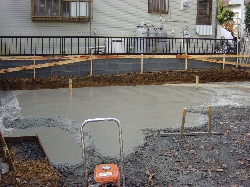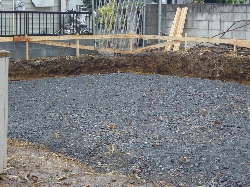 砂利の上に「ステコン」と呼ばれる基礎の下の部分にあたるコンクリート流し込みました。 |