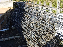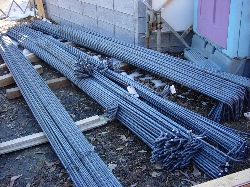 型枠が作られて1週間、特に大きく変わったことがなかったのですが、本日、基礎の鉄筋が搬入されました。かなりの量です。図面を見ると全てダブル配筋となっていましたが、既に搬入されてきた鉄筋が一次加工されダブルの状態になっていました。どのように組んでいくのかわかりませんが、これ全てが基礎の中に入ることを想像すると、基礎自体がかなりの大きさになりますね。早く見てみたいところです。参考までに鉄筋を持ち上げてみましたが、かなりの重さでした。