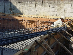 本日、基礎の鉄筋組みが行われました。ステコンの上にスペーサーが置かれ、その上に鉄筋が敷かれていきました。底面もダブルの配筋になりますので、まずは、第一階層から組んでいきます。かぶり厚も充分あります。それにしても、他のハウスメーカーのユーザーサイトで紹介している基礎組みと違って、鉄筋の間隔が細かいのには驚きました。木造や鉄鋼系は、結構大きめの格子でしたがやっぱりパルコンは重量があるせいか目が細かいですね。鉄筋が多ければ良いというものではないですが、この配筋を見ただけでもパルコンの強さを感じますね。