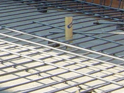 ステコンの上にスペーサーが置かれその上に格子上に鉄筋を組んでいきます。