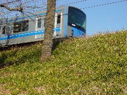 土手の上を電車が通過しましたが、まったく揺れはありません。(当り前ですね)