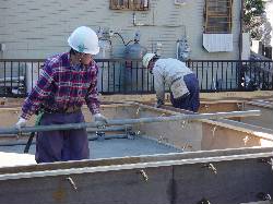 コンクリートを流し込んだ翌日の作業です。既にかなりの固さになっています。