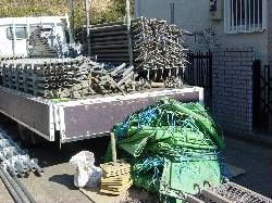 新たに足場用の機材が運びこまれました。緑色のシートはもしや?