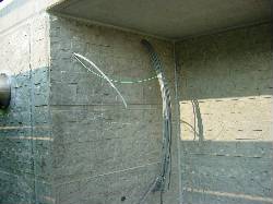 バルコニー部分の壁面に配線が飛び出していました。アンテナの配線用です。