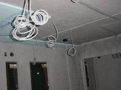 おっと、2階に電気配線が張られております。