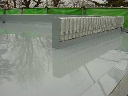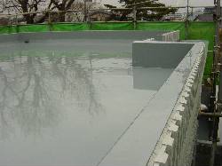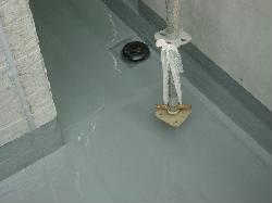 濡れているように見えますが、すでに乾いた状態です。この上にもう一度防水工事をやるとのことです。