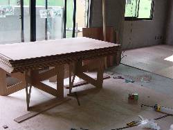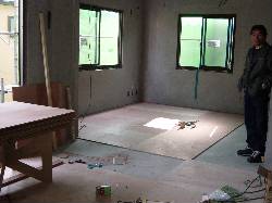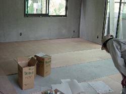 いよいよ本日から造作工事が始りました。昨日から実家の両親が私に代わり偵察?をしに来ましたので、今日は大勢で現場に行ったようです。くれぐれも作業の邪魔にならないよう注意してくださいね。まずは2階フロアの床板が貼られました。