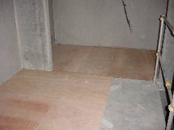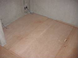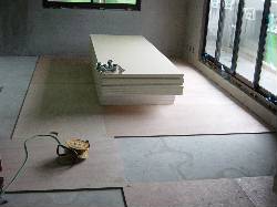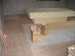 2階の各部屋に合板が敷かれました。四隅は断熱ボードの厚み分だけ空いております。