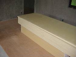 壁に貼り付ける断熱ボード&石膏ボードの合板が待機しています。