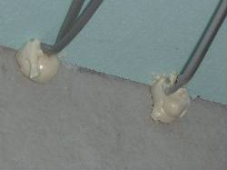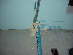 天井の断熱ボードから出ている配管等が発泡ウレタンで断熱処理がされていました。