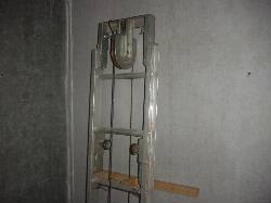 資材を2階持ち上げる簡易クレーンです。写真で見るのとは違って、実物はかなりの大きさでした。