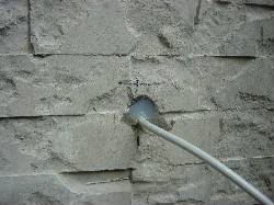 コンクリートの表側に出ている部分は樹脂系のパテで処理されていました。