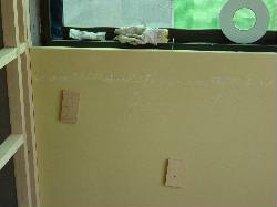 主寝室も一面合板に覆われました。