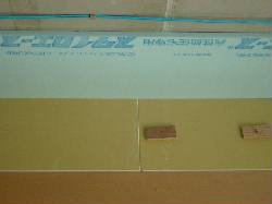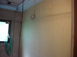 断熱ボード+石膏ボードの合板を壁に貼り付けていきます。