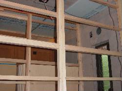 内壁の中の配線が木枠を貫通していました。こんな風に処理するんですね。