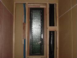 リビングの扉がつきました。ガラス面を大きく採ったデザインです。