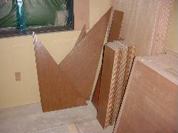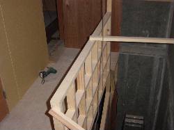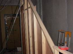 階段付近の工事が進んだようです。階段手摺が組まれており、階段下収納部の扉も設置されました。これでようやく2階に上がるのに苦労しなくてすみそうです。