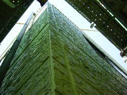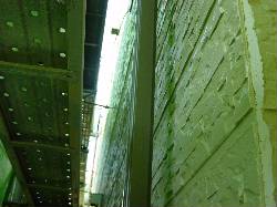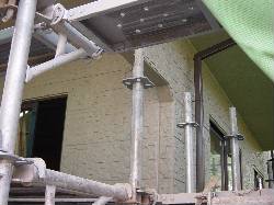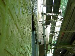 吹き付け工事2日目です。どんな具合に仕上がっているのでしょうか?今日こそハーブグリーンがお目見えするかな?と思いつつ、妻が撮影した写真を拝見しましたが、今一つ色の感じがわかり難いです。夜現場へ確認に行きましたが余計わかりませんでした。残念ながら足場が外れないと全体観がわかりません。週末までの我慢ですかね。