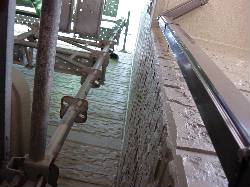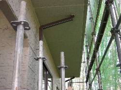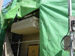 玄関の庇も吹き付け済みですが、なんか違うなぁ〜。