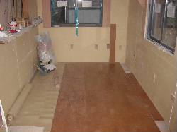 ダイニング付近です。マロンブラウンのフローリングが貼られました。