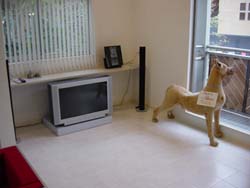 シアタースペースです。犬のオブジェは大成建設の定番のようです。