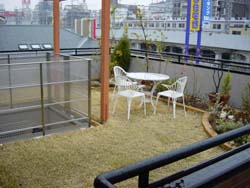 お約束の屋上もしっかりあります。芝生が敷かれなんとも贅沢です。