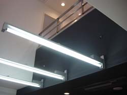 吹き抜け部分の照明は実にシンプルでカッコイイですね。
