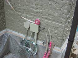 本日、建物の外で水道配管工事等が行われました。狭い我が家ではありますが、玄関側と駐車スペースの2箇所に水栓つけました。その他電気工事も行われました。
