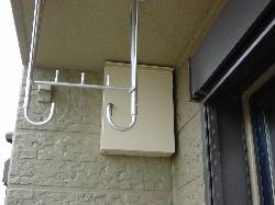 バルコニーにの庇の下に電源が設置されました。コンセントは屋上用&バルコニーの照明用です。