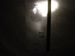 懐中電灯を頼りにフラッシュ無しで2階のインターホンを撮影。その後、バッテリーは力尽きました。