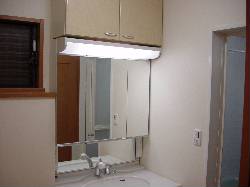 こちらは洗面台です。吊戸で収納力を強化しました。