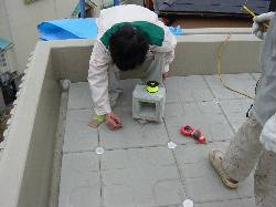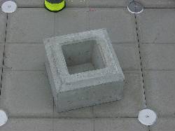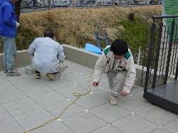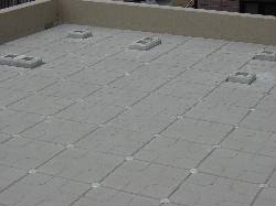 本日、引越日と同時に、屋上手摺工事も行われました。通常のアルミ手摺とは違って、断熱ブロックの上に敷石を設置するのではなく、一部ブロックをカットして設置します。