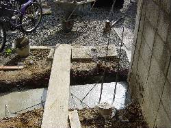 本日から玄関周りの外構工事が始まりました。まずは門柱を立てる部分の基礎打ちです。スペース的に狭い玄関ですが、納得できるモノができればと思います。