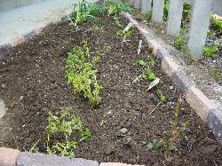小野菜のコーナーに野菜の苗を植えました。トマトなどを植えようかと思っていたのですが、ご近所から「鳥に食べられる」というアドバイスを頂き根菜に変更しました。
