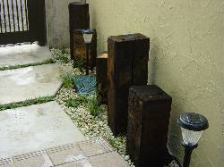 人感センサーライトと門柱ライトの他にアプローチ用のソーラーライトを設置しました。夜良い雰囲気でアプローチを照らしてくれます。