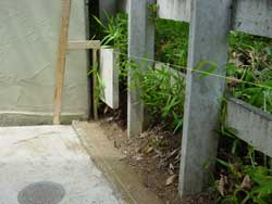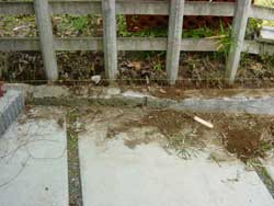 土手から敷地内に入り込んでいた雑草を刈り取り、以前の土留めをブラシで洗浄しました。