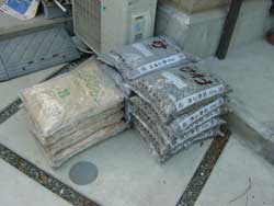 砂利:280kg、砂:240kg、セメント:120kg、重量ブロック:54個(約600kg)