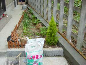 以前の土留めはかなり低く土手の土が入り込んでいます。