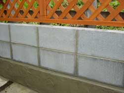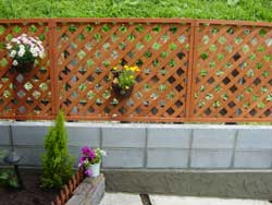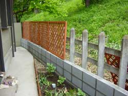 基礎、ブロック、ラティスの3層からなる我が家のフェンスです。 |