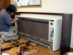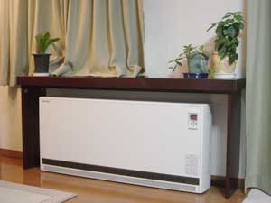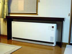 製のエルサーマットシリーズのETS-700TEJです。暖房能力3400Wの大型機種です。これ一台でLDK+和室で23.5帖の広さを充分カバーできます。設置は日本スティーベルの代理店が東京電力ということもあり、東電と提携している