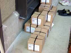 蓄熱体のレンガ21箱(42個)も搬入されました。それにしても重いですね。
